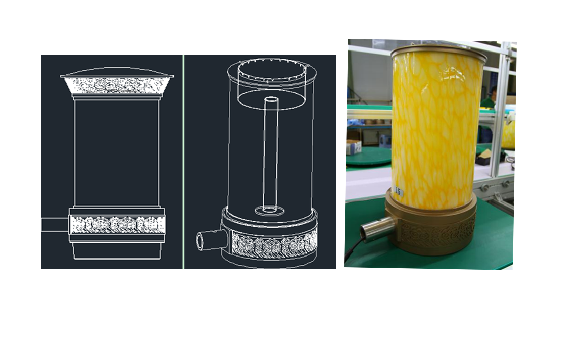 中間部分的LED光源,主要是保證燈筒的裝飾照明,由于燈筒為玻璃材質(zhì),且上照光源下沉,要保證通體均勻發(fā)光,存在很大的難度。對此LED研發(fā)團隊反復研究燈筒結(jié)構,獨特提出了側(cè)發(fā)光配光方案,為此燈筒開發(fā)了側(cè)發(fā)光LED小模塊,此小模塊選用Cree XPG2大功率燈珠,防護等級為IP66,并通過小模塊的組合應用,每個燈筒采用10個小模塊,采用由下而上的照射方式,巧妙的解決陰影,達到通體均勻發(fā)光的照射效果。并且由于采用模塊化設計,維護方面非常方便。
