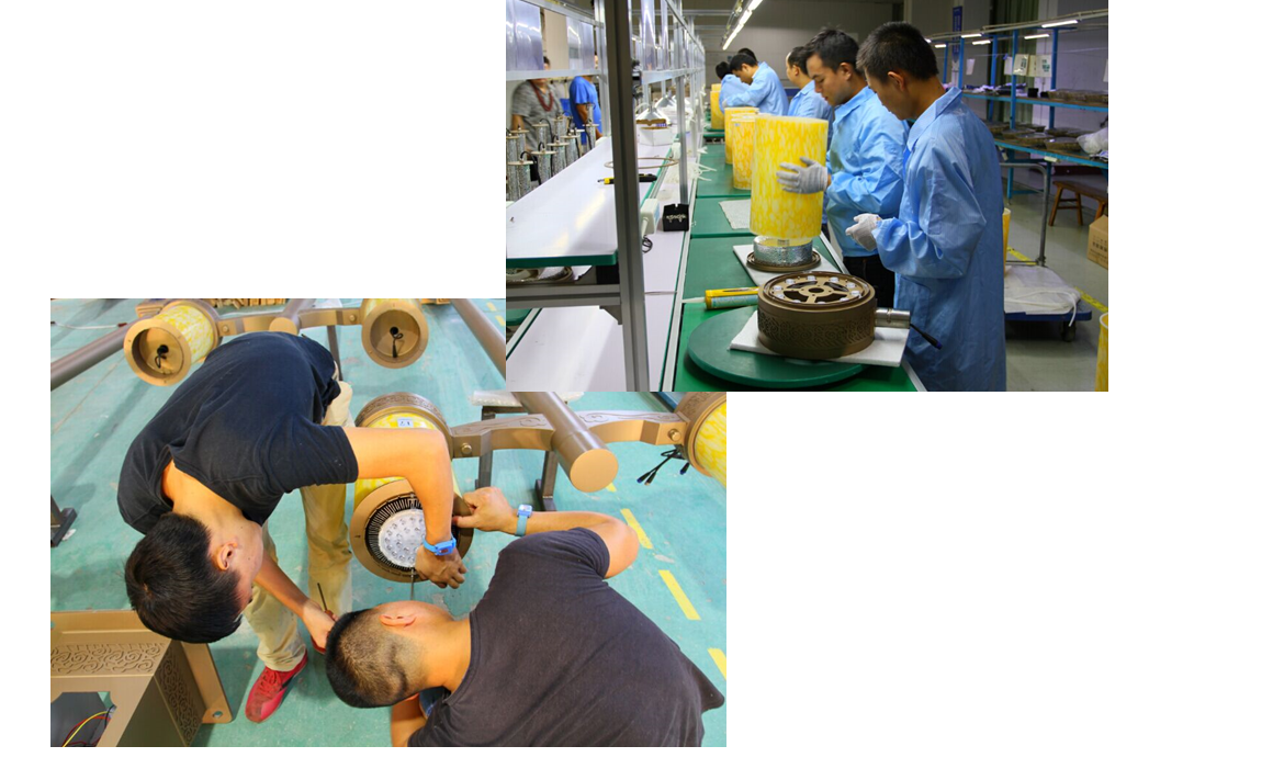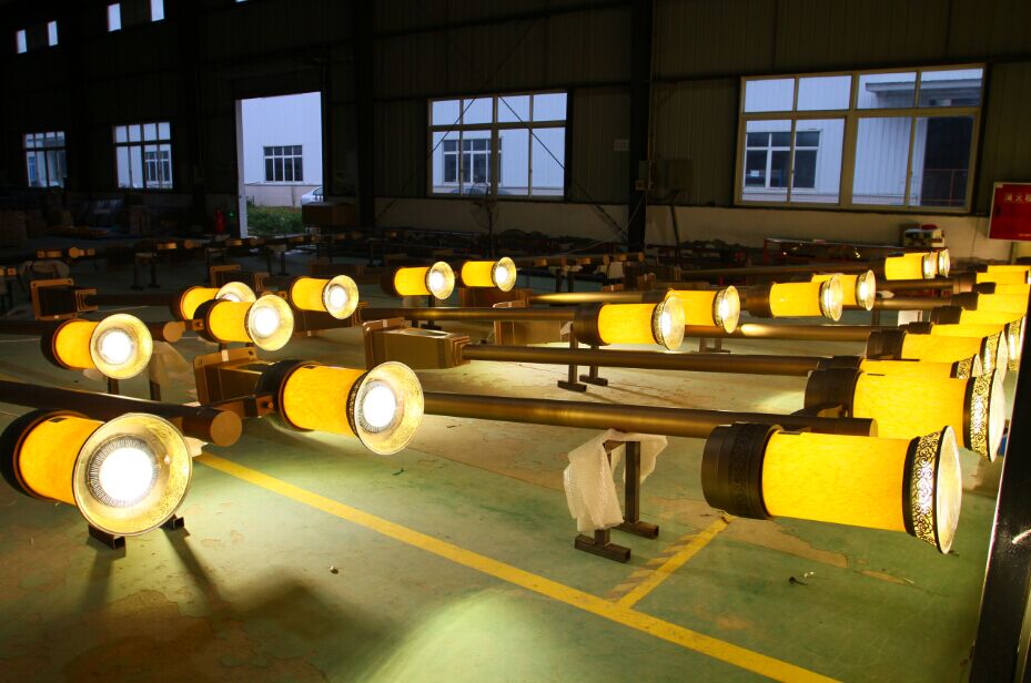 各個部件生產(chǎn)好后進(jìn)行裝配,使產(chǎn)品完整地呈現(xiàn)。首先是電器的裝配,LED燈、金鹵燈、點光源等各種定制光源一一組裝,線路按顏色區(qū)分規(guī)范操作。結(jié)構(gòu)上,燈桿和燈筒的裝配也需要細(xì)心和耐心。經(jīng)過能工巧匠的生產(chǎn)、裝配、調(diào)試,一盞盞莊重典雅的步道燈開始閃耀光芒。