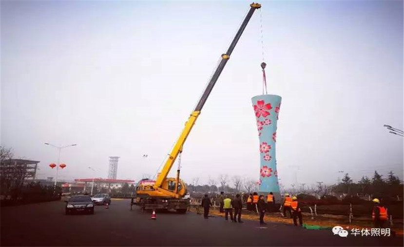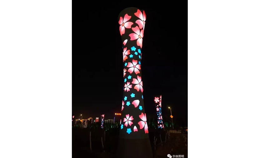 在轉(zhuǎn)盤部分,采用12只10米高的月季花景觀燈柱作為燈陣,甚是好看。燈桿上雕刻的月季花圖案更是奪人眼球,賞心悅目。在月季花景觀燈柱中間還安裝了月牙燈組,設(shè)計(jì)靈感來源于月亮的陰晴圓缺等幾種不同的形態(tài),黃、橙,藍(lán)、綠顏色也不斷變換,給人美輪美奐之感。
