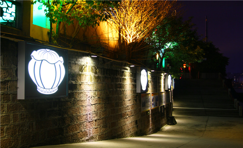 在本次項(xiàng)目中,夜景效果更多體現(xiàn)在立面的視點(diǎn)上,河堤、欄桿等地方的照明采用了“荷葉蓋罐”燈箱等,體現(xiàn)了獨(dú)具匠心的設(shè)計(jì)。