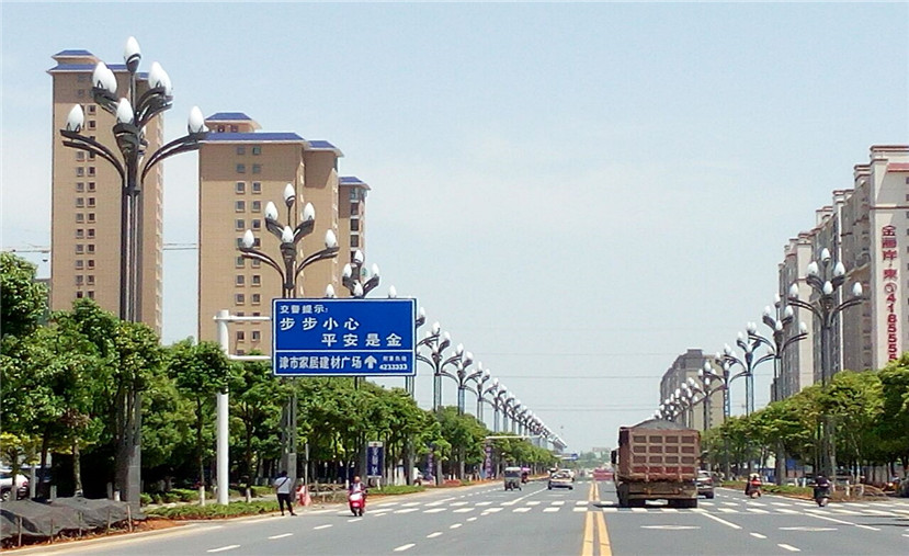 為深入貫徹常德市在十三五規(guī)劃綱要中提出的“一個中心、三個邁進、五個常德”的發(fā)展戰(zhàn)略,加快城市提檔升級步伐,2017年4月,常德市津市九澧大道路進行道路照明改造。四川華體照明科技股份有限公司根據(jù)道路的基本情況,設計并安裝了15.08米“八叉九火玉蘭燈”。