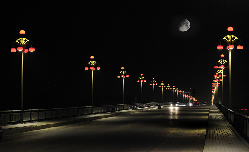 石門(mén)大道是石門(mén)火車(chē)站進(jìn)入石門(mén)縣城的迎賓大道,雙向六車(chē)道,人流量車(chē)流量都很大,設(shè)計(jì)者據(jù)此設(shè)計(jì)了1+3+6三層組合的15米高的柑橘景觀路燈“碩果累累”,燈柱部分是“中國(guó)柑橘之鄉(xiāng)”的篆體紋飾,突顯石門(mén)“柑橘”元素。2017年春節(jié)前完工。石門(mén)二橋是跨流經(jīng)石門(mén)縣城的澧水大河的老橋,雙向兩車(chē)道人流量車(chē)流量相對(duì)較少,設(shè)計(jì)者設(shè)計(jì)了安裝了1+4兩層組合7.5米高的柑橘景觀路燈。項(xiàng)目于2017年4月完工。這兩款燈型均內(nèi)置LED光源,節(jié)能環(huán)保。