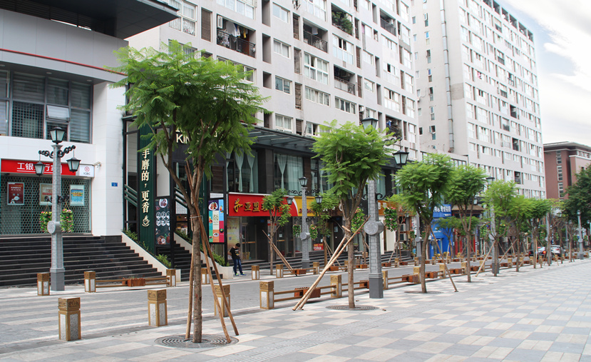 由于金港國際步行街屬于國際化綜合性商業(yè)物業(yè)區(qū),又距離重慶國際新機(jī)場較近,人流量車流量都很大,對燈光的要求較高?!懊駠L(fēng)情”燈高16.5米,主光源和裝飾光源皆采用LED,彰顯節(jié)能環(huán)保理念?!懊駠L(fēng)情”燈既滿足了步行街的照明需求,又顯示出濃郁的民國風(fēng)情,形成了獨(dú)具特色的城市景觀。