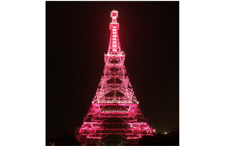 長慶石化廠區(qū)大門上方正好是長慶石化的通訊塔,該通訊塔承擔(dān)著重要的通訊傳輸任務(wù),但該通訊塔功能單一,沒有任何裝飾性的東西,特別是在夜間更顯不出其重要作用。