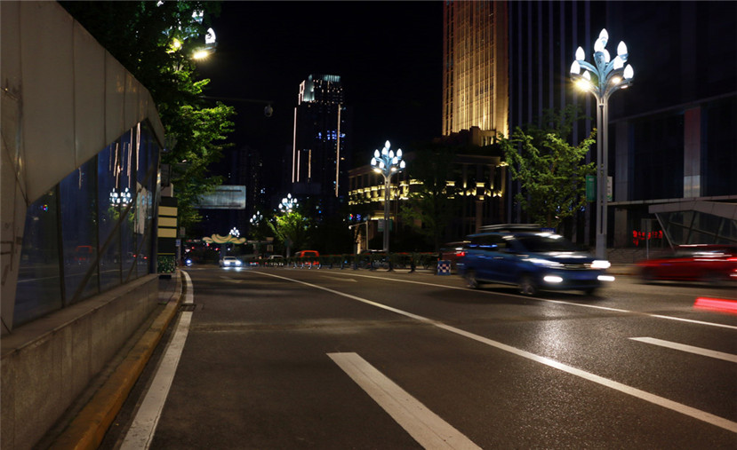 淺灰色的燈桿,代表著重慶這一座充滿著青春活力的城市靚麗的色彩,而皎潔的LED光源,也大大提升了江北城夜間照度和亮度,也與江北城的夜景景觀照明相互配合,展現(xiàn)出3D重慶夜間的繁華。