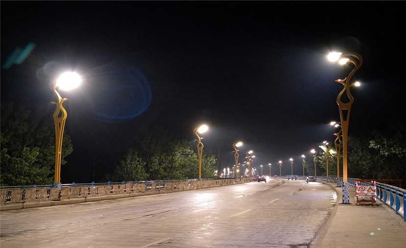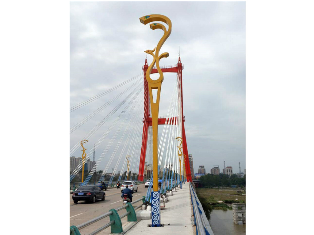 華體科技根據(jù)鳳臺縣名稱的由來,為鳳臺淮河大橋定制設(shè)計“鳳舞九天”文化路燈。