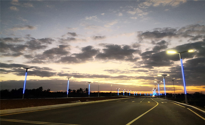 華體科技根據(jù)江東大道“世界眼光、國際標準、海南特色、高點定位”的要求,為業(yè)主方定制設(shè)計了“鋒飛”現(xiàn)代路燈近900柱,安裝在江東大道長達15公里的道路上。