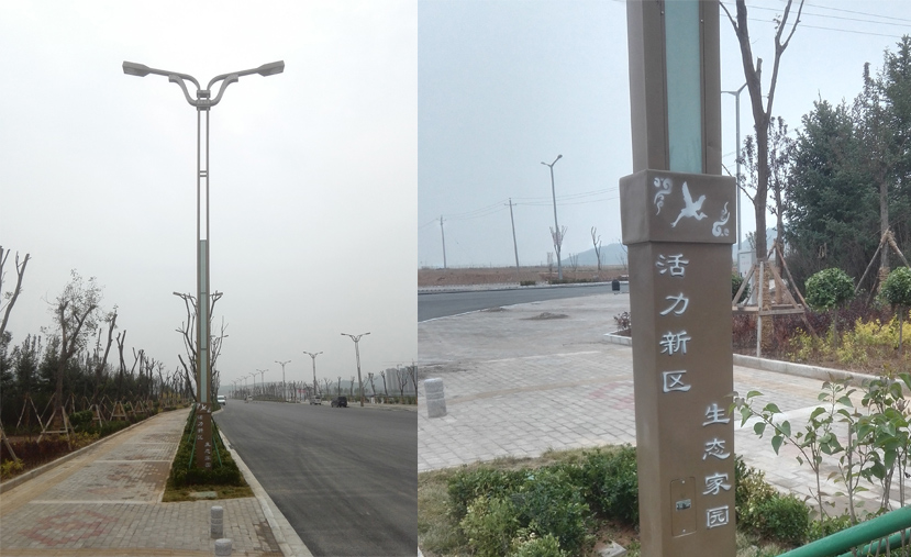 “鼎燈”以“鼎”的形式為基礎(chǔ),整體設(shè)計(jì)大氣,體現(xiàn)延安老革命精神的莊嚴(yán),極具濃郁的地方色彩。桿體底部采用有機(jī)玻璃,底座有“活力新區(qū),生態(tài)家園”的字樣,表達(dá)對(duì)新區(qū)建設(shè)的美好向往。桿體中部加裝LED燈帶,七彩變色,豐富道路夜間照明。