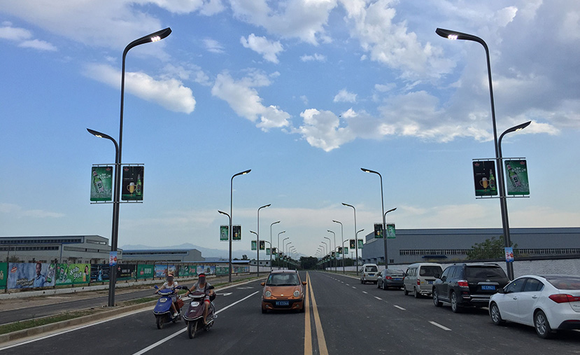 青啤大道兩旁安裝的雙葉燈,采用新葉植物造型元素并進行流線型設(shè)計,賦予現(xiàn)代簡潔的線條,一次性成型制作。光源采用綠色節(jié)能的LED,安于高低臂燈頭上,桿體內(nèi)部安裝LED裝飾光源,中部則安裝了宣傳啤酒狂歡節(jié)的廣告牌,整燈透過光影層次,不僅讓道路更富有生命力,享有綠色環(huán)保的功能照明,而且烘托出第四屆青島啤酒節(jié)的節(jié)日氣氛。