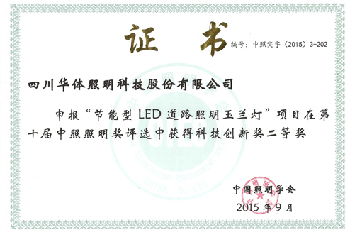 華體節(jié)能型LED道路照明玉蘭燈獲中照獎科技創(chuàng)新二等獎
