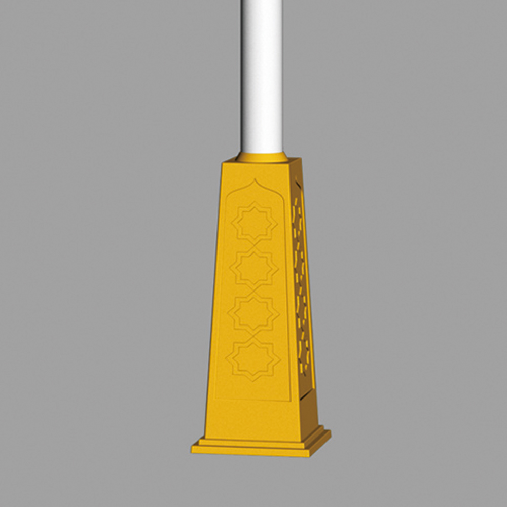燈型整體以新疆維吾爾伊斯蘭建筑外形特點(diǎn)來(lái)造型,在傳統(tǒng)華燈的基礎(chǔ)上實(shí)現(xiàn)景觀與功能照明巧妙結(jié)合,造型大氣、地域文化氣息濃厚;