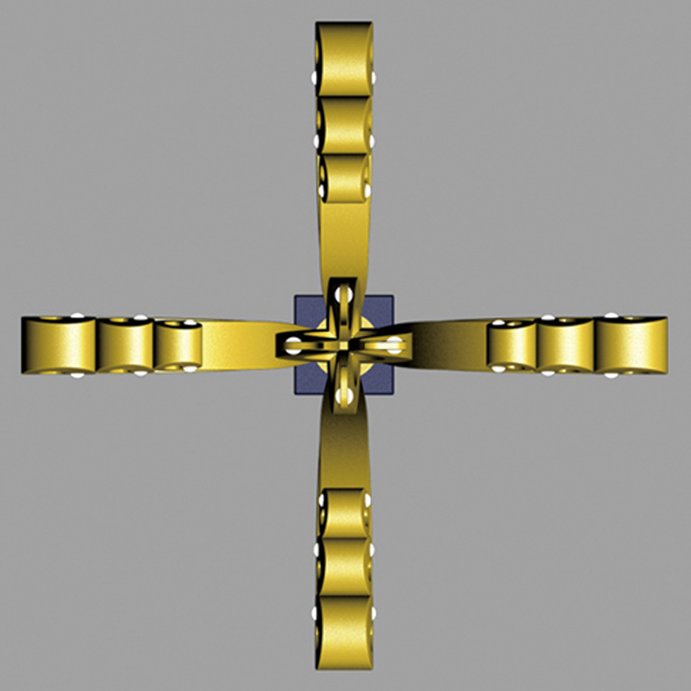 燈型采用中國(guó)傳統(tǒng)的四向?qū)ΨQ手法,展現(xiàn)出鳳的高貴與華麗,可謂是“毫光灑風(fēng)雨,紋彩動(dòng)云霓”;