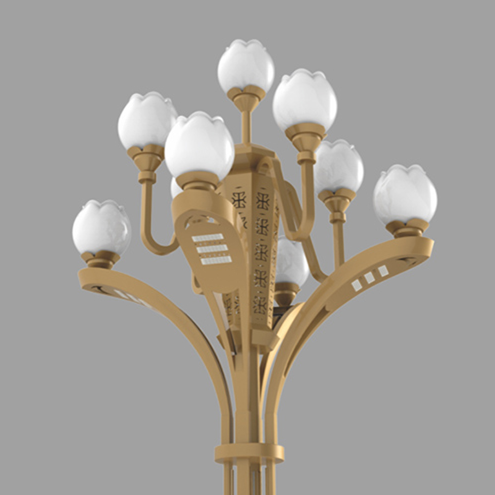 該款燈可以在原有景觀照明基礎上,增加了功能照明,使功能照明和景觀照明完美結合??蓪ED光源巧妙的配置于戶外文化定制燈具中,替代傳統(tǒng)鈉燈及節(jié)能燈光源,使用革命性創(chuàng)新,在不影響使用及美觀的情況下,降低該類裝飾性景觀路燈的功率密度,切可在桿體內側加裝華體單燈智能照明管理系統(tǒng)。