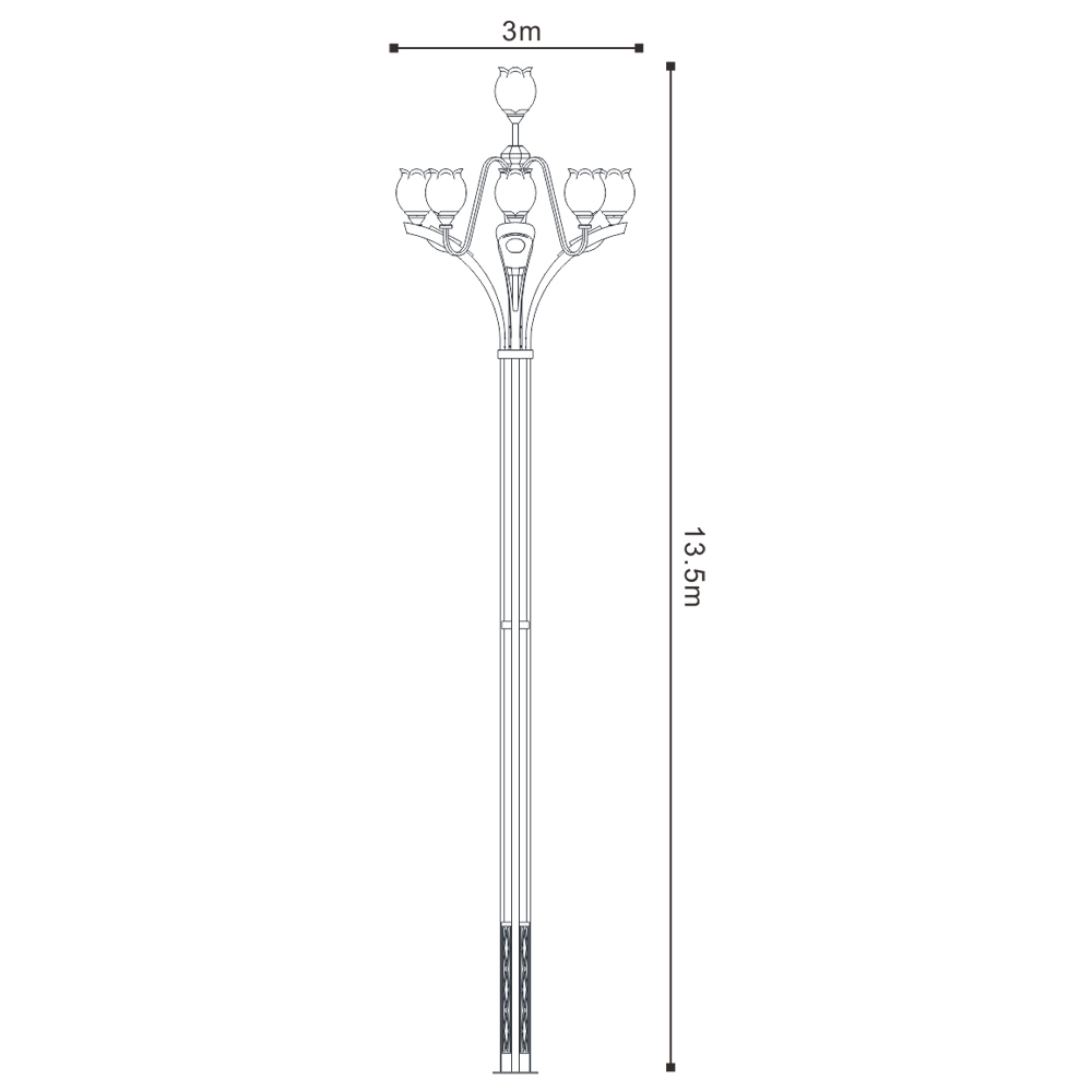 中華燈是一款極具中國特色,外觀大方的多等頭燈具。芙蓉中華燈是在傳統中華燈的基礎上進行了改良,保留其神韻,切加入新的元素,巧妙的運用花瓣的形式,實現了燈桿與燈頭的實體連接;