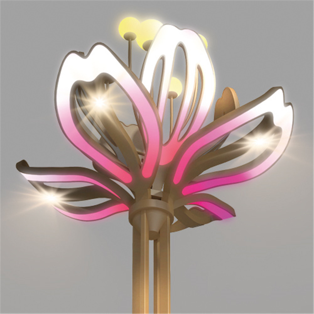 設(shè)計以五彩繽紛的花朵,襯托城市的華麗。提升城市品位,營造絢麗多姿的夜間景觀照明。