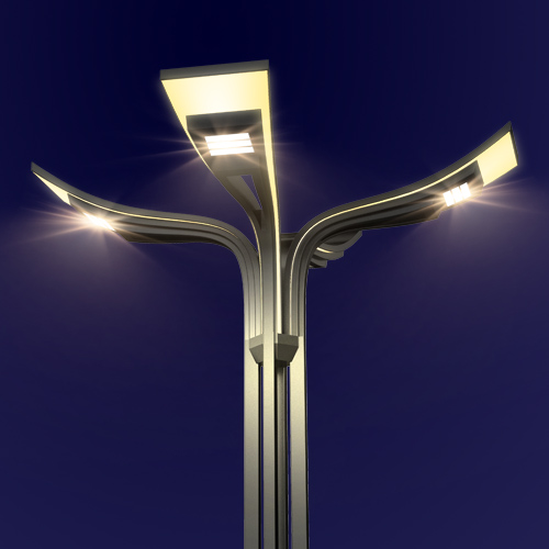 燈型設(shè)計(jì)以簡潔流暢的線條為設(shè)計(jì)元素,結(jié)合現(xiàn)代簡潔的設(shè)計(jì)手法,提取流暢的線條,燈臂如展翼翱翔的翅膀,寓意城市蓬勃發(fā)展、日甚一日。