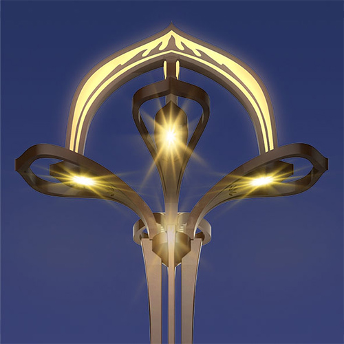 層花瓣邊緣處安裝了RGB LED裝飾光源,彎曲造型,線條柔美流暢;外層盛開花瓣的正