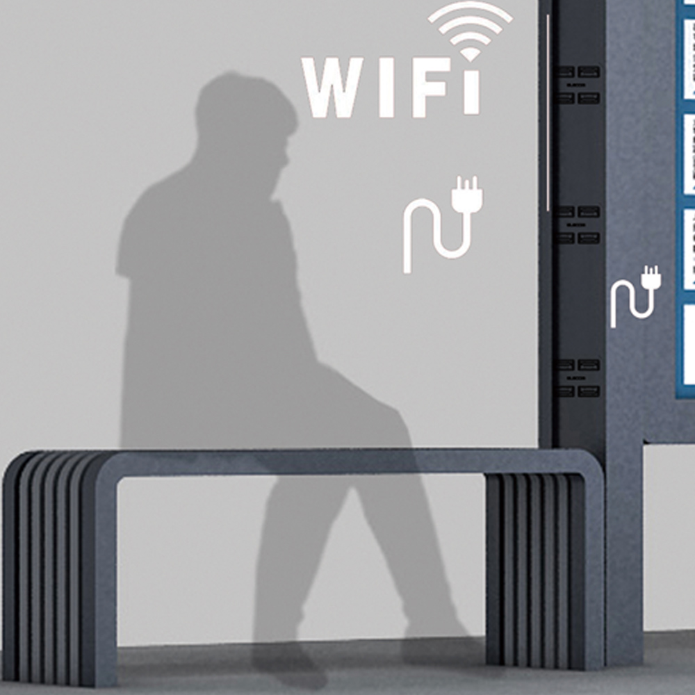 公交車站頂部配有LED節(jié)能燈, 結(jié)構(gòu)美觀, 不容易受損, 壽命時(shí)間長, 節(jié)能環(huán)保 。